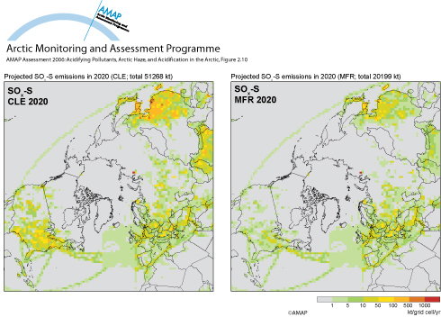 Projected SOx-S emissions in 2020 for the CLE and MFR emissions scenarios