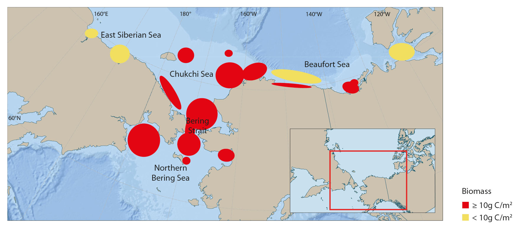 Table 3.8 Location of benthic hotspots in the BCB region (Dunton et al., 2005, 2006, 2012; Darnis et al., 2012; Grebmeier and Maslowki, 2014; Grebmeier et al., 2015; Moore and Stabeno, 2015).