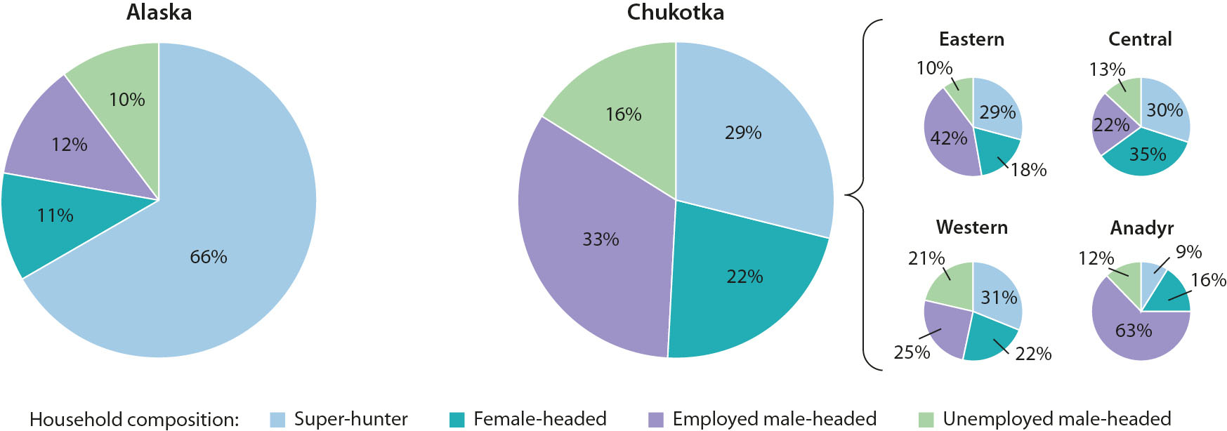 Figure 6.1 Comparison of household composition for Alaska and Chukotka (based on SLiCA data, as reported by West, 2011).