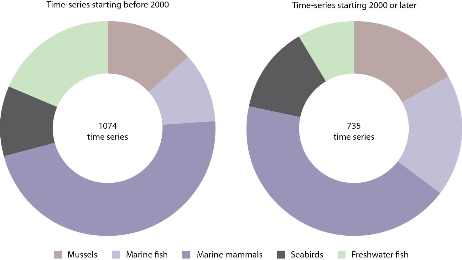 Figure 3.1 Overview of available biota time-series shown by animal group.