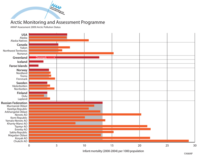 Infant mortality in Arctic countries and regions (2000-2004) per 1000 population