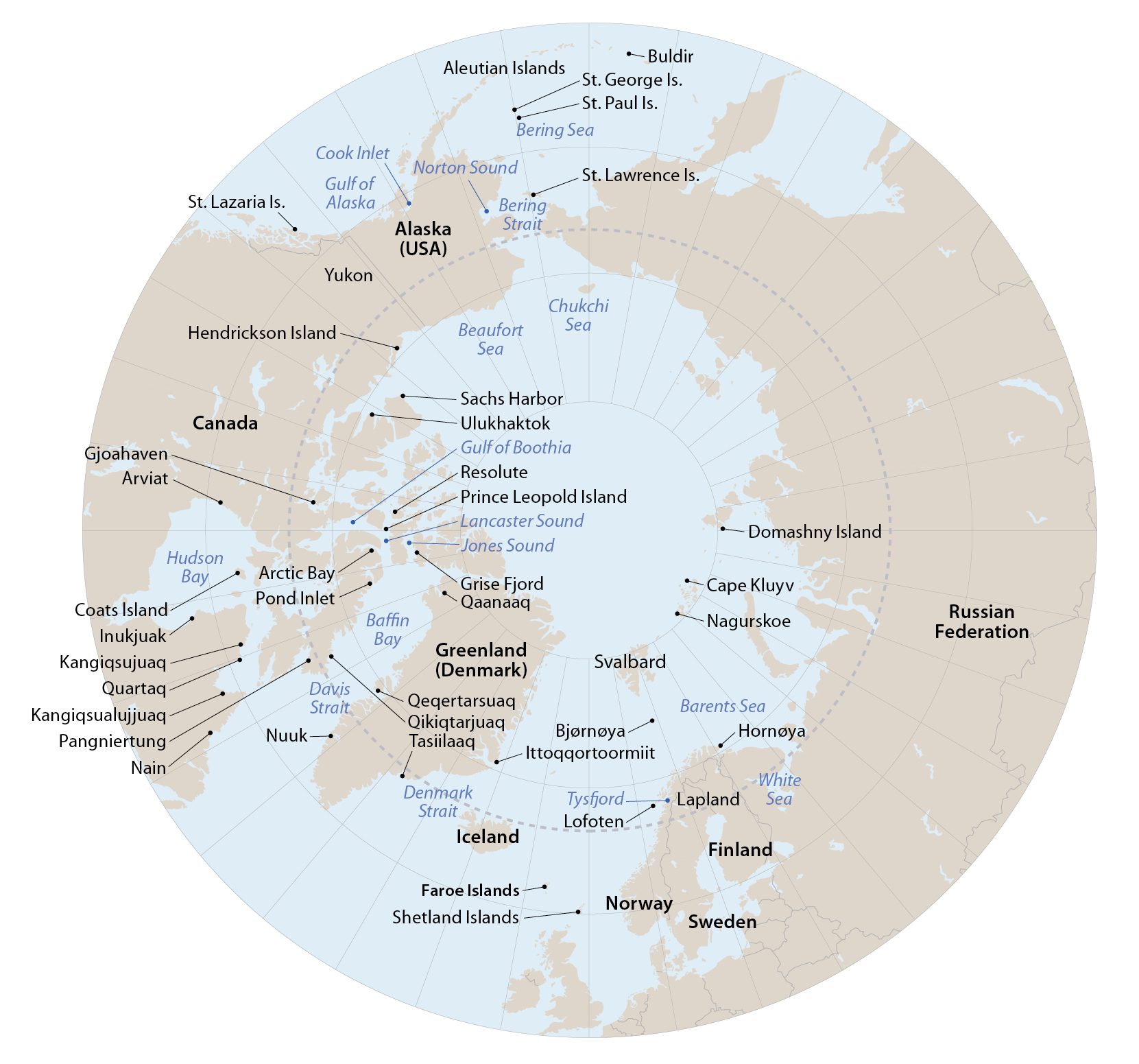 Figure 1.1 Regions from which contaminant exposure and effect studies were available for the present assessment.