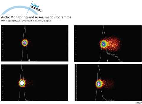Representative comet images for a healthy donor, benzo[a]pyrene diol epoxide treated cells from a healthy donor, a participant with low DNA damage and a participant with some DNA damage