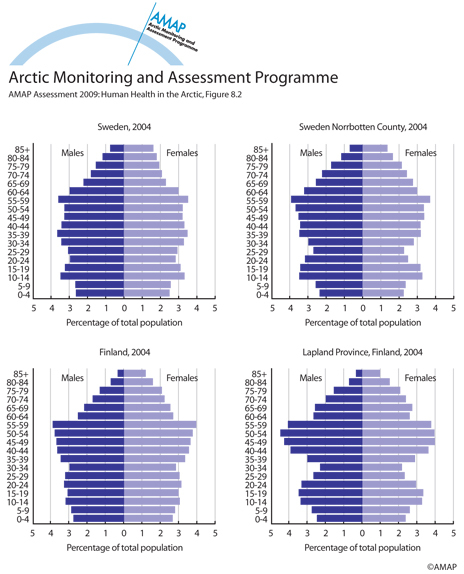 Age-gender population structure of Sweden and Finland in comparison to their Arctic regions