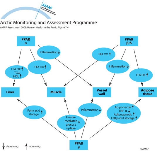 Effects of PPAR- α, PPAR-β/δ, and PPAR-γ in various tissues