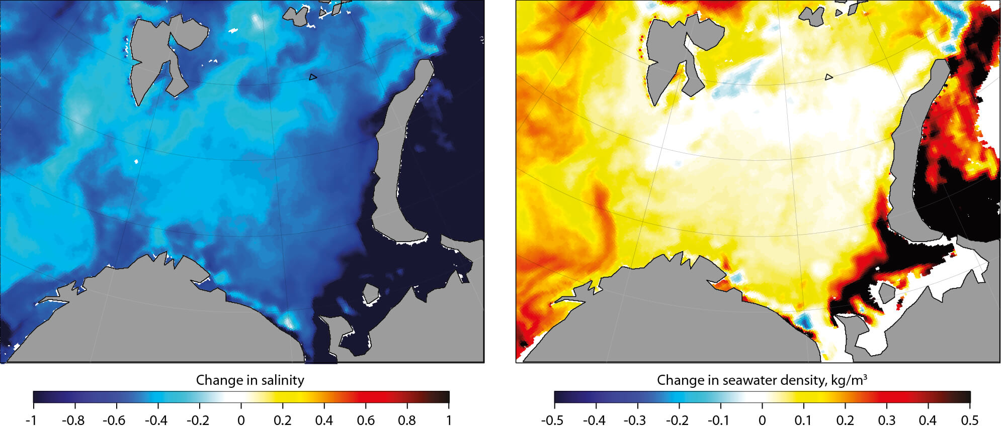 Projected changes in salinity and sea water density using RCP 4,5