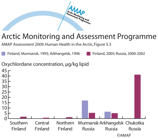 Oxychlordane concentrations in breast milk from various regions of Finland and northern Russia