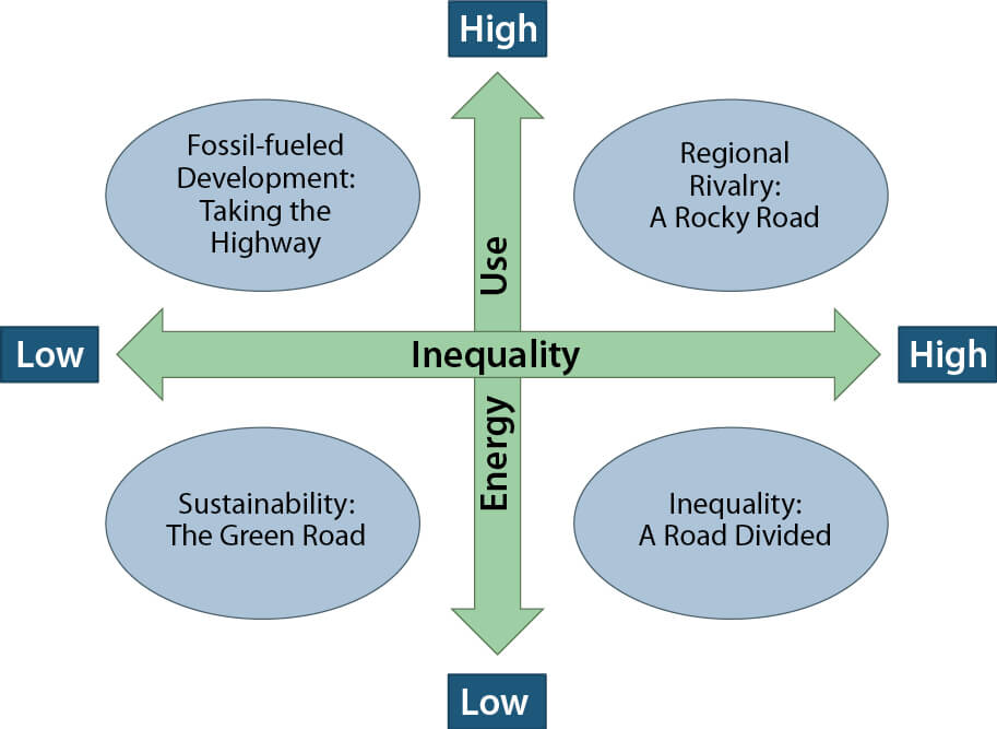 Figure 5.1 The SSPs were developed to cover different challenges in relation to adaptation and mitigation (based on O’Neill et al., 2017).