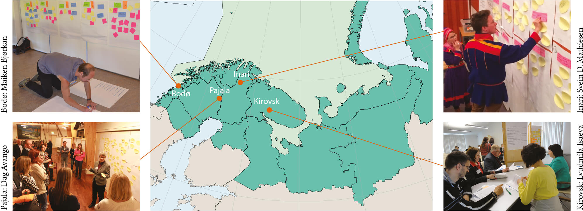 Figure 5.3 Locations of scenario workshops conducted for the Barents area pilot studies.