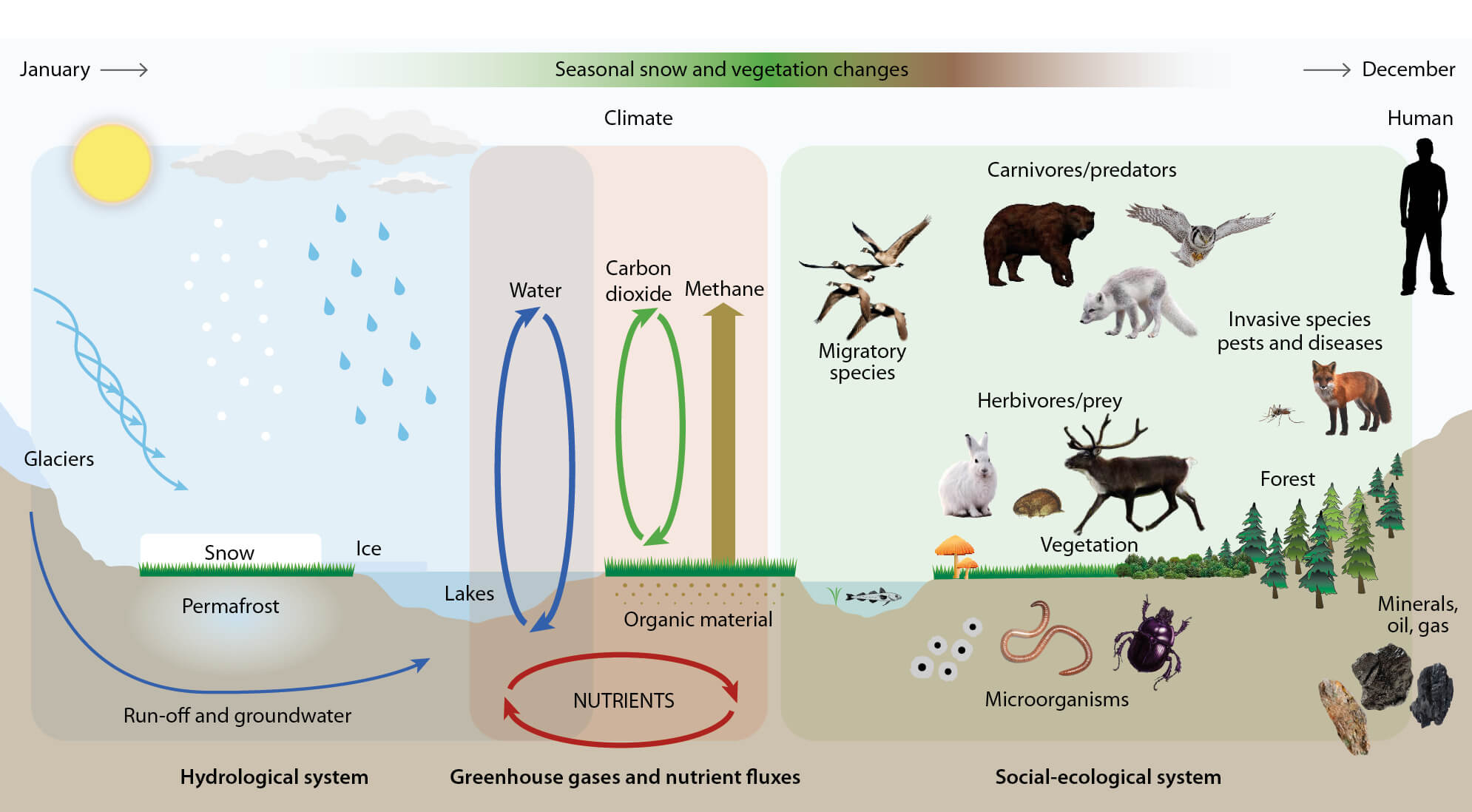 Figure 6.1 Important elements in the Arctic terrestrial and freshwater ecosystems (Bob van Oort, Cicero).