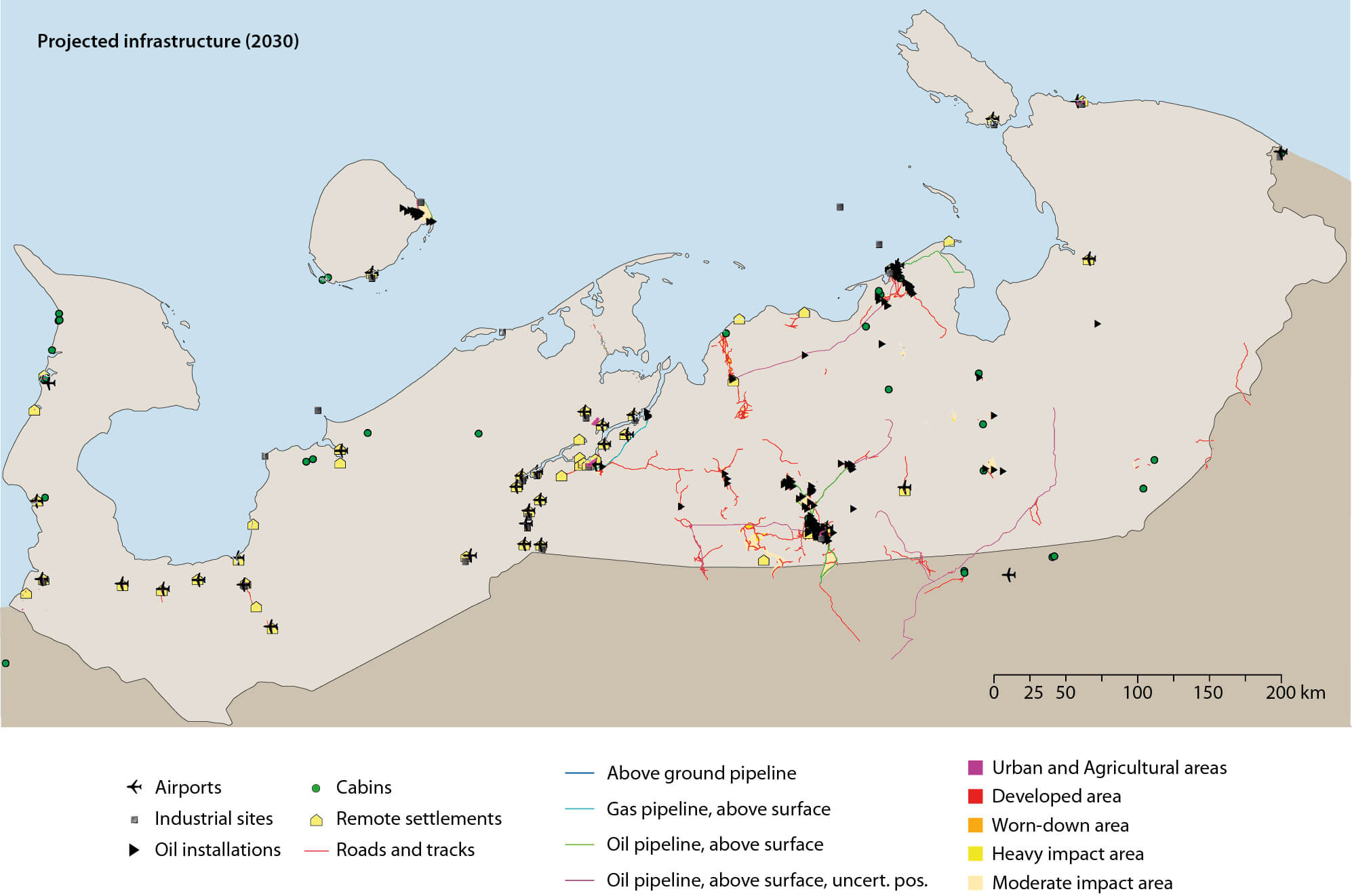 Figure 7.2 Projected infrastructure development in the Nenets Autonomous Okrug, Russia (Wilbert van Rooij / Plansup).