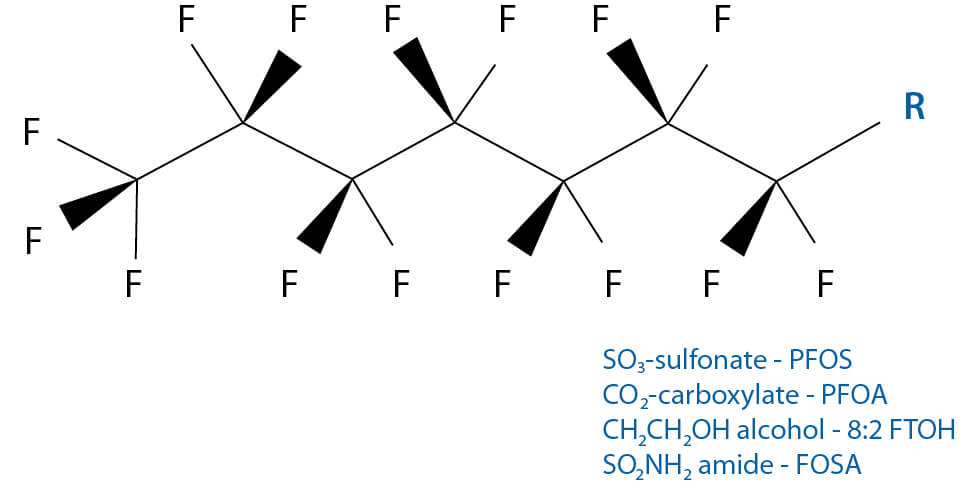 Figure 2.1 Molecular structure of perfluorinated alkyl substances.
