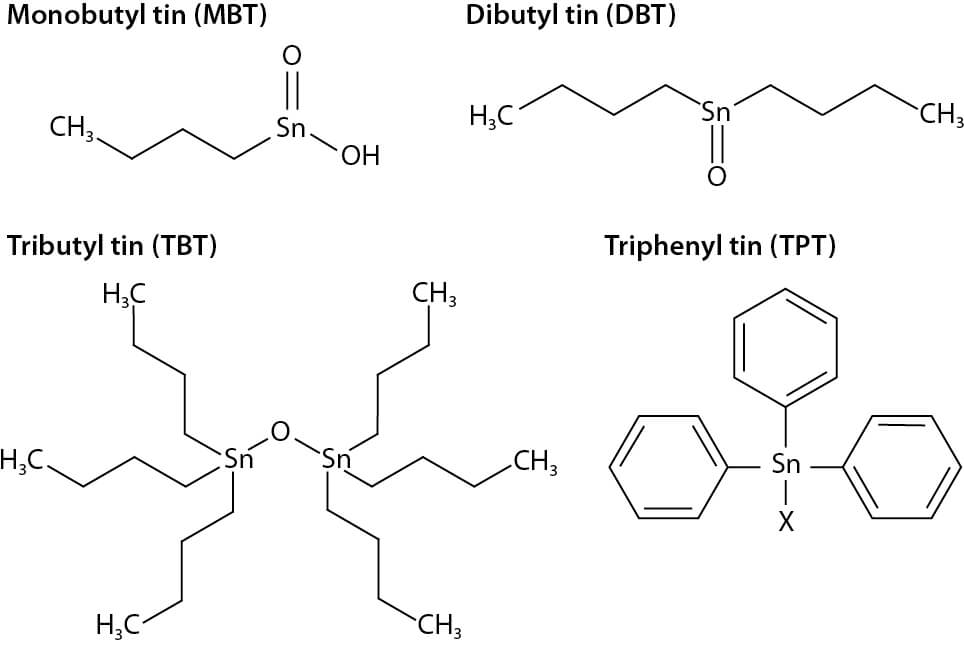Figure 2.107 Example structures of some organotins.