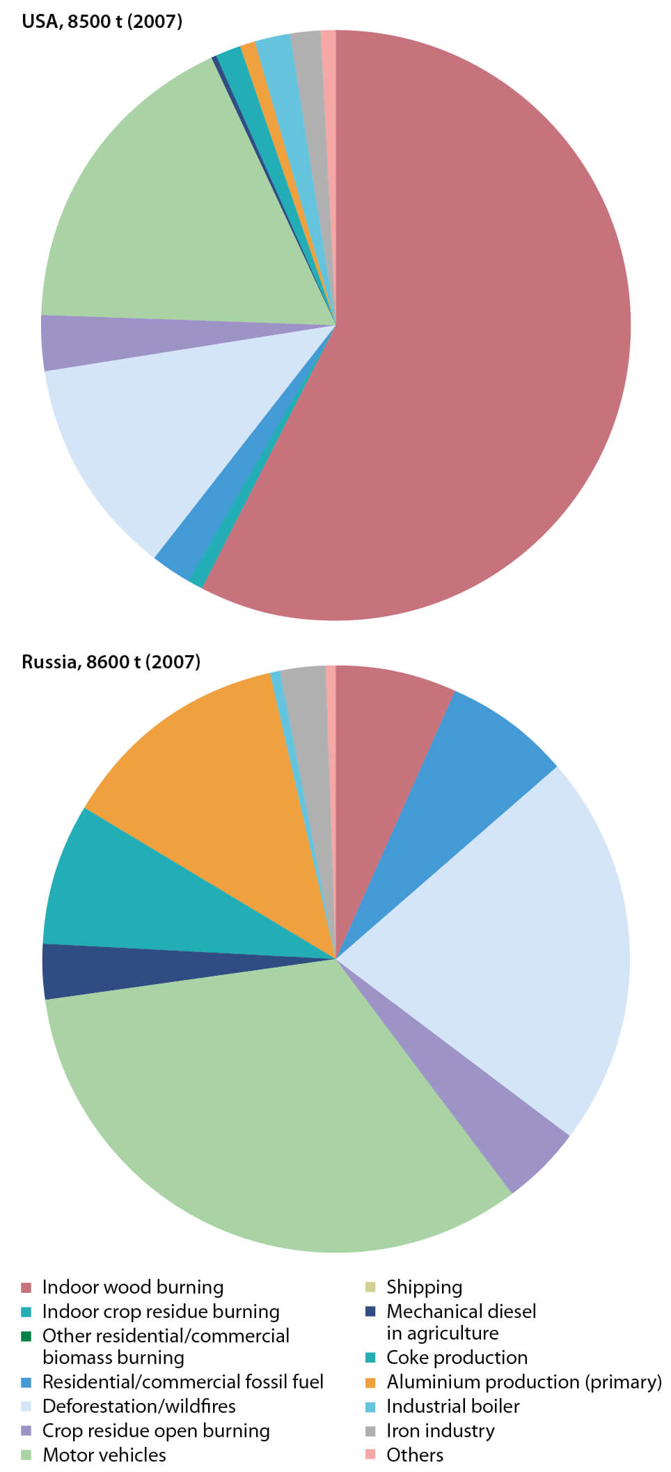 Figure 2.110 Source profiles of PAHs for the USA and Russia (Shen et al., 2013).