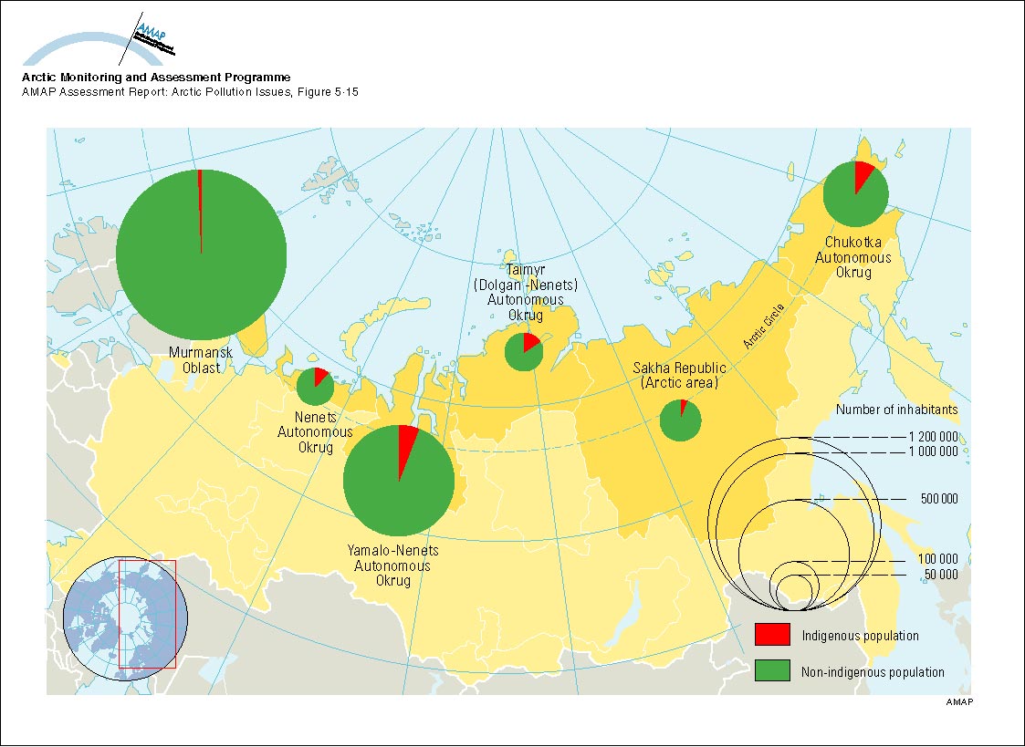 Total and indigenous minority populations in the Arctic area of the Russian Federation, by region, according to the 1989 Census