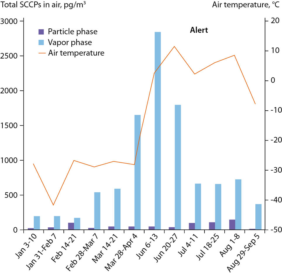 Figure 2.65 SCCP high volume air concentrations at Alert, Canada in 2011 (NCP, 2015a).