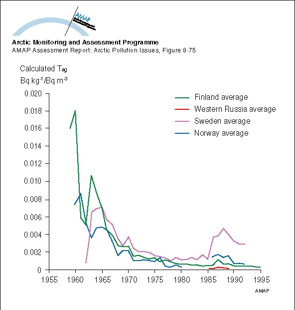 Temporal variation in cow milk Tag values for Sweden, Norway and Finland