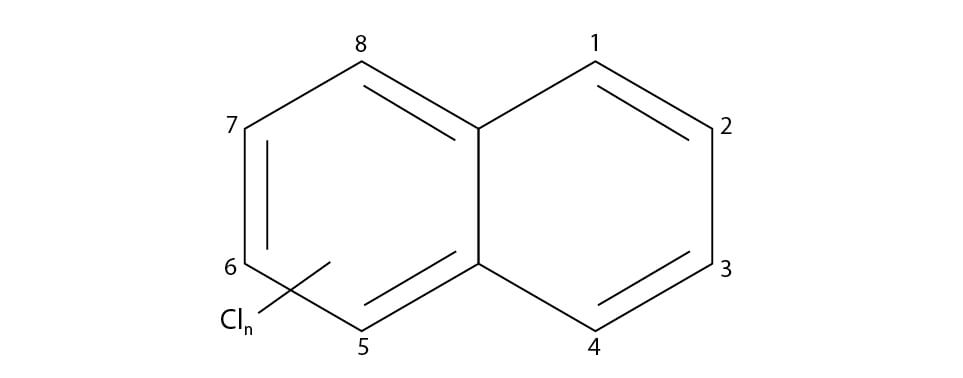 Figure 2.81 Chemical structure and ring numbering system of polychlorinated naphthalenes (PCNs) (Falandysz et al., 2014).