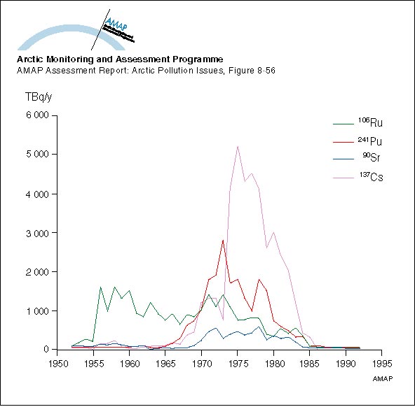 Gray, J., S.R. Jones and A.D. Smith, 1995. Discharges to the environment from the Sellafield Site, 1951-1992. J. Radiol. Prot. 15: 99-131. (AAR Figure 8.56)