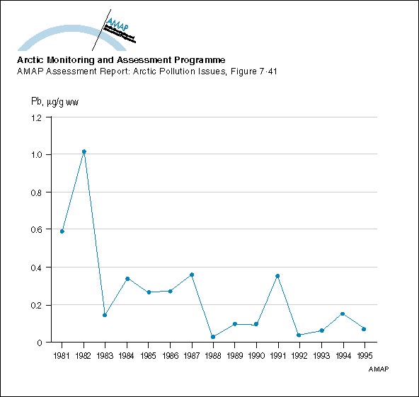Johansen, P., F. Riget and G. Asmund, 1996. Miljøundersøgelser ved Maaarmorilik 1996. Faglig rapport fra Danmarks Miljøundersøgelser (DMU) nr. 193. 97 pp. (In Danish, with English summary). (AAR Figure 7.41)