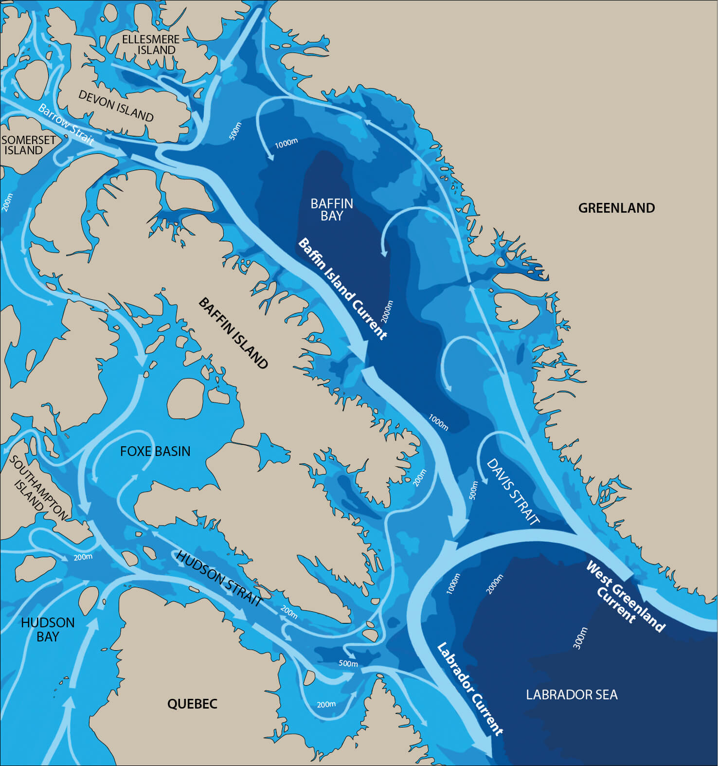 Figure A4.4 Ocean current circulation in the Baffin Bay / Davis Strait region.