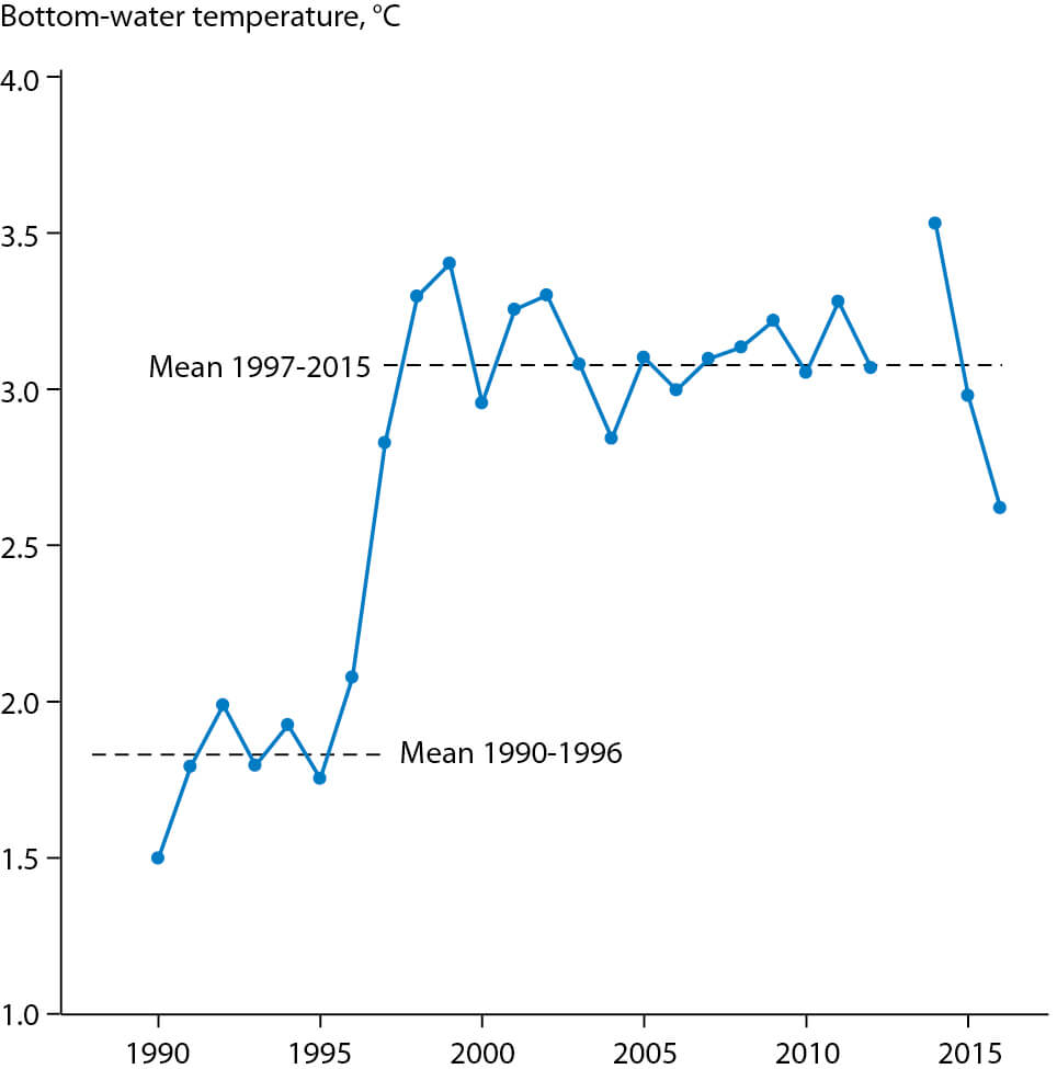 Figure A4.21 A shift in area-weighted average bottom temperature (Burmeister and Kingsley, 2016b).