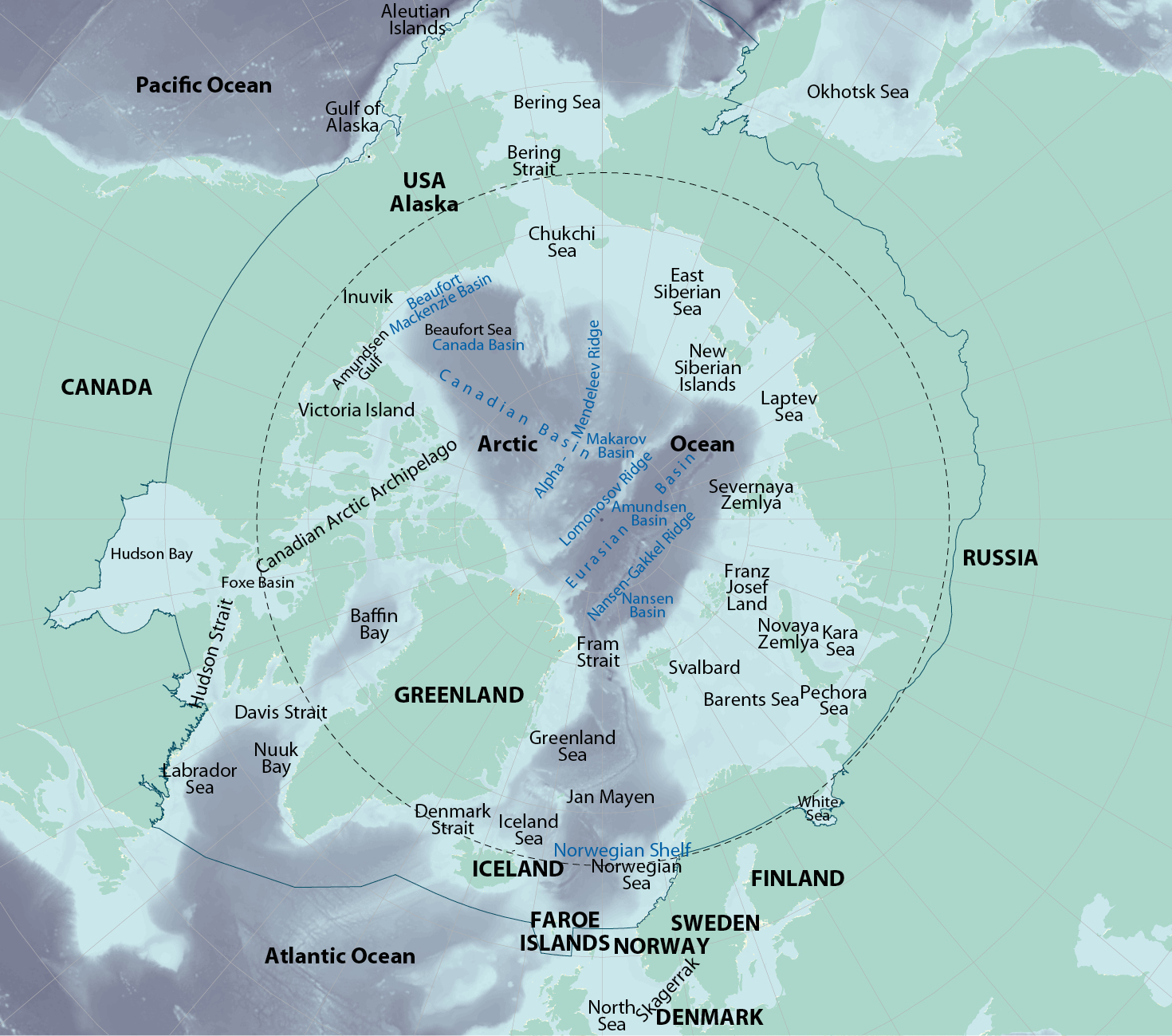 Figure 2.2 The Arctic Ocean and its marginal seas.
