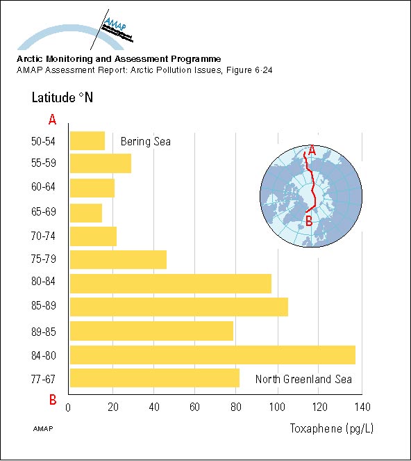 Measurements of toxaphene in surface water in the Bering Sea (1993) and the transpolar cruise (1994)