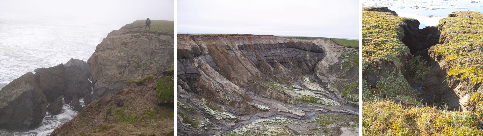Figure 4.20 Thermal abrasion (a), thermal denudation (b) and thermo-erosional gully (c) at the Kara Sea coast, Yugorsky Peninsula, Russia (photos M.O.Leibman).