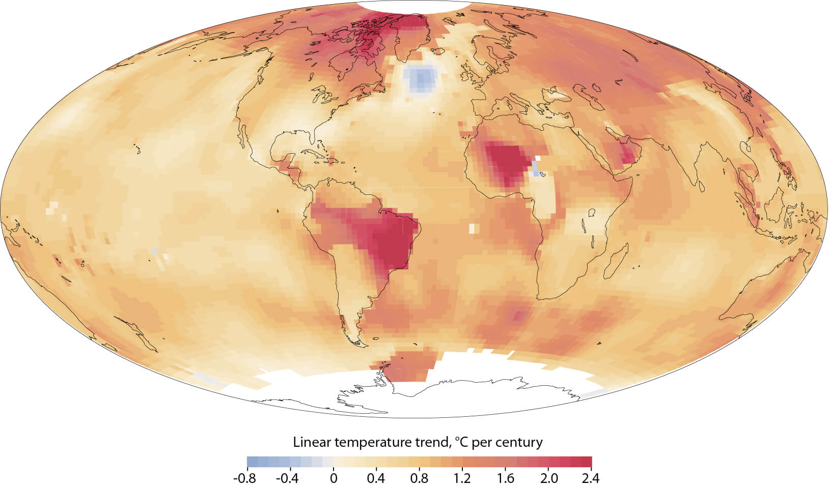 Figure 6.11 Linear trends in annual surface temperature since AD 1901 (after Rahmstorf et al., 2015).