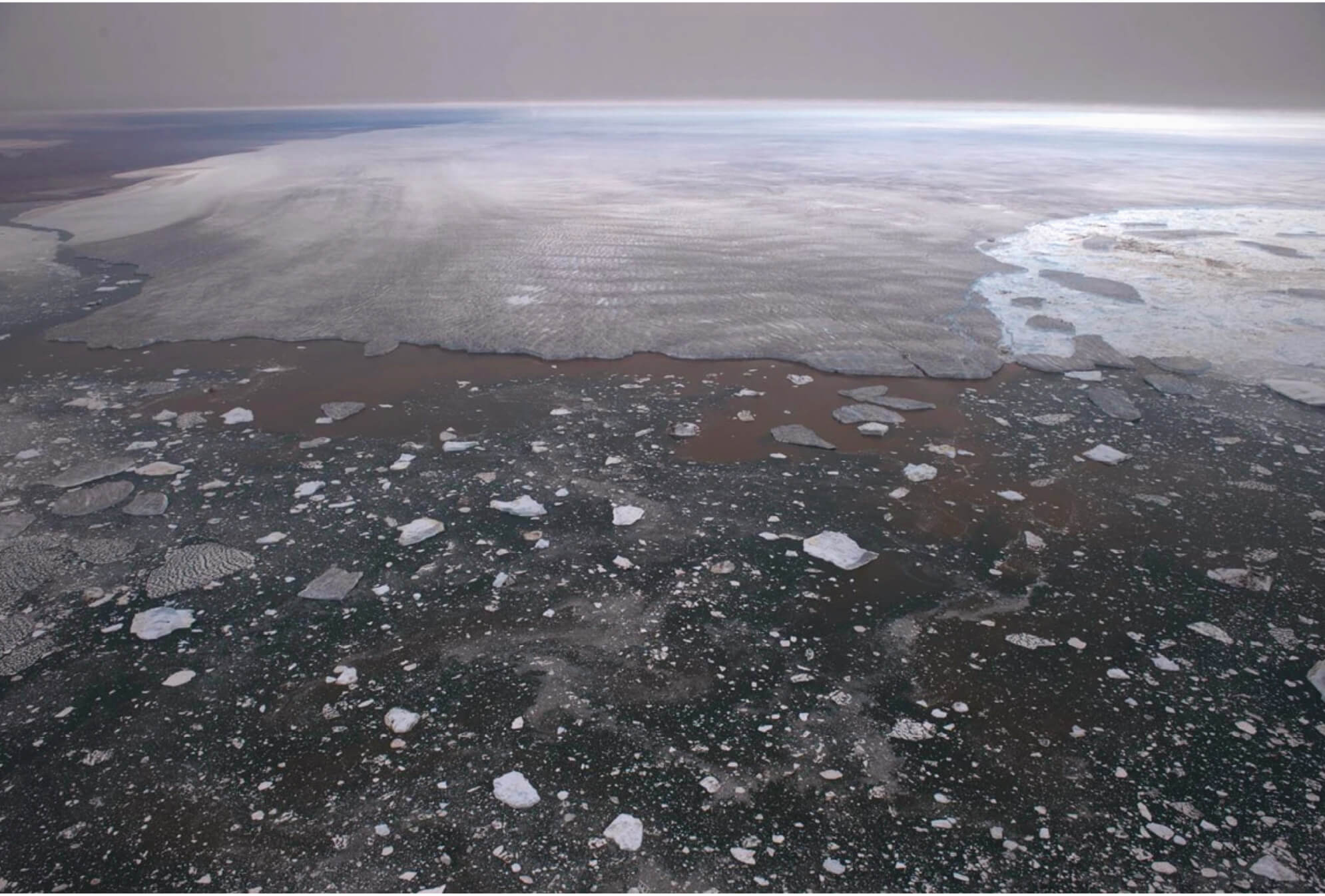Figure 6.25 Aerial view of sediment-rich waters in front of the Humboldt glacier in northwest Greenland, July 2009.