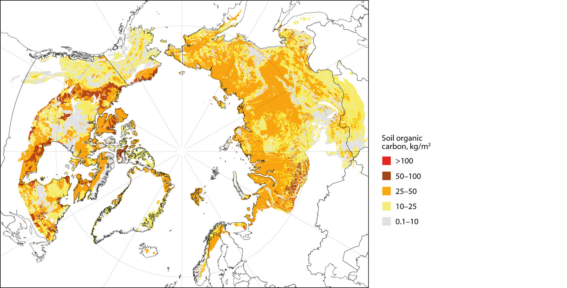 Figure 8.5 Carbon distribution of northern permafrost soils derived from the Northern Circumpolar Soil Database (Hugelius et al., 2013).
