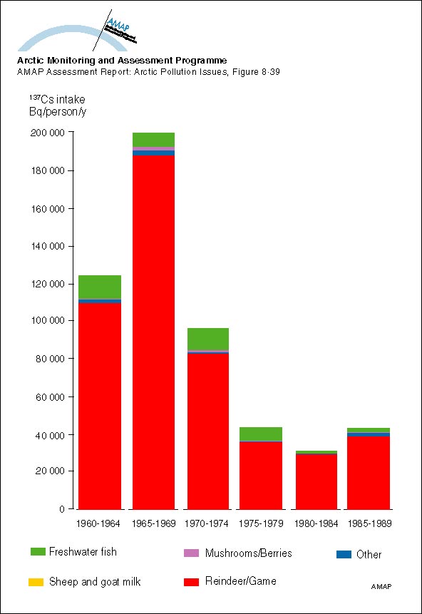 Yearly intake of 137Cs from various dietary components by the ‘selected’ population of Arctic Finland