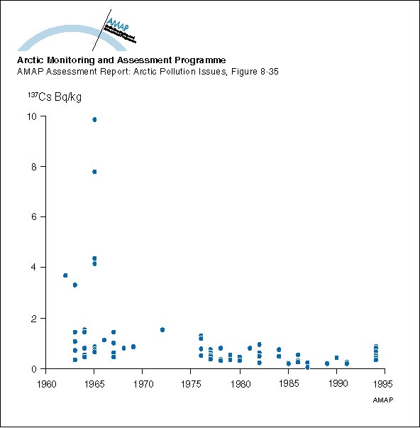 Changes with time in 137Cs activity concentration in seals from Greenland waters