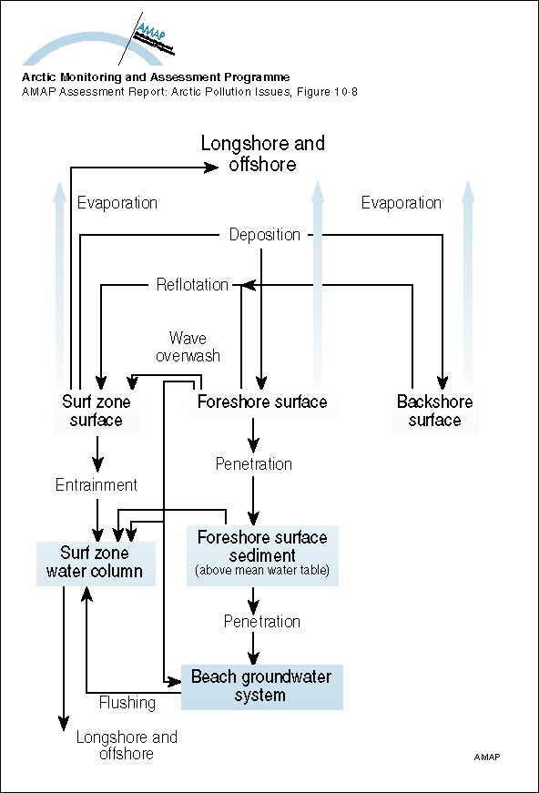 Reed, M., T.W. Kana and E.R. Gundlach, 1988. Development, testing and verification of a oil spill surf-zone mass-transport model. Minerals Management Service, U.S. Dept. of the Interior, Anchorage, Alaska, 178p.+ appendices. (AAR Figure 10.8)