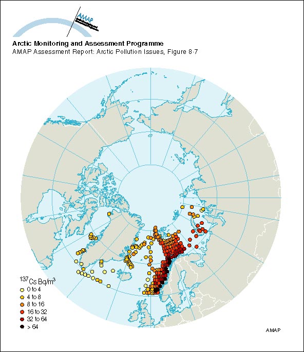 Cs-137 activity concentrations in surface seawater in 1979 and 1982