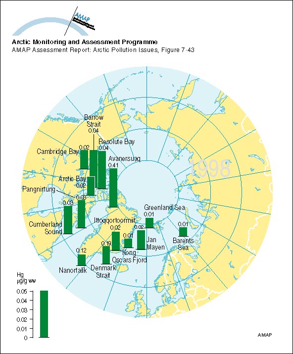 Circumpolar distribution of Hg levels in muscle tissue of Arctic cod (Boreogadus saida) Arithmetic mean concentrations