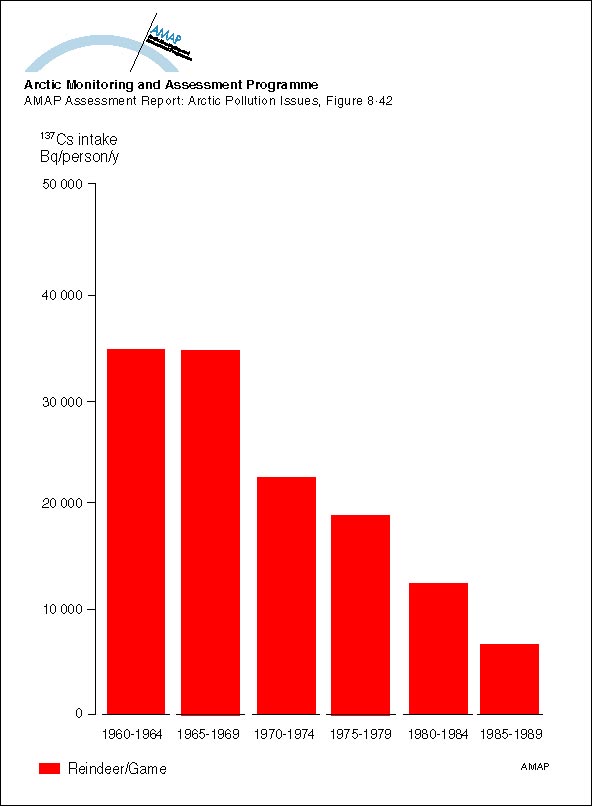 Yearly intake of 137Cs from various dietary components by the average population of Arctic Canada