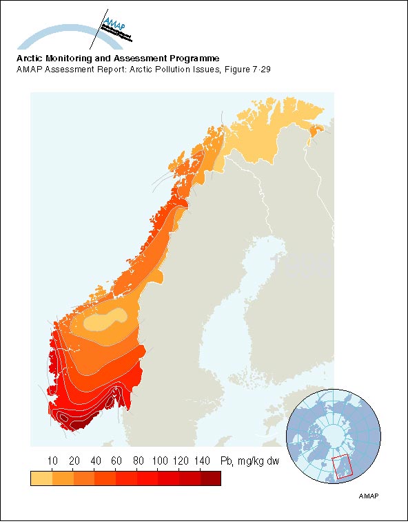 Lead concentrations in soil in Norway in 1975
