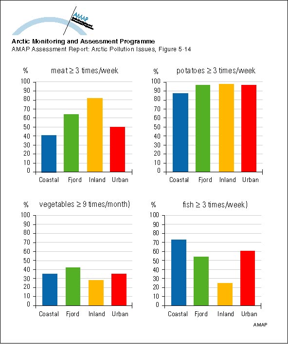 Westlund, K. and A.J. Søgaard, 1993. Helse, livsstil, og levekår i Finnmark. Resultater fra Hjertekarundersøkelsen i 1987-88. Finnmark III. University of Tromsø, Institute of Community Medicine, ISM Skriftserie Nr.28, 272p. (AAR Figure 5.14)
