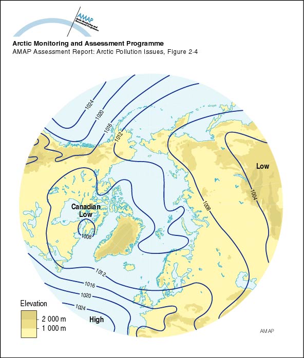 Mean atmospheric sea-level pressure (mb) in the Arctic in July