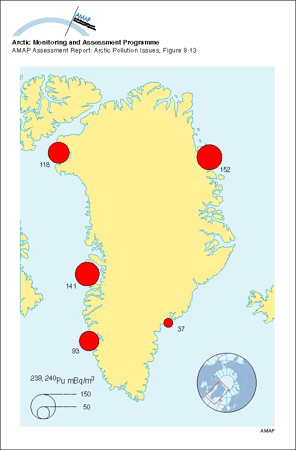 Concentrations of 239,240Pu in seawater around Greenland, 1968