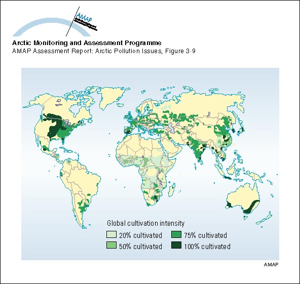 Global distribution of cultivation intensity based on a 1° x 1° latitude/longitude grid
