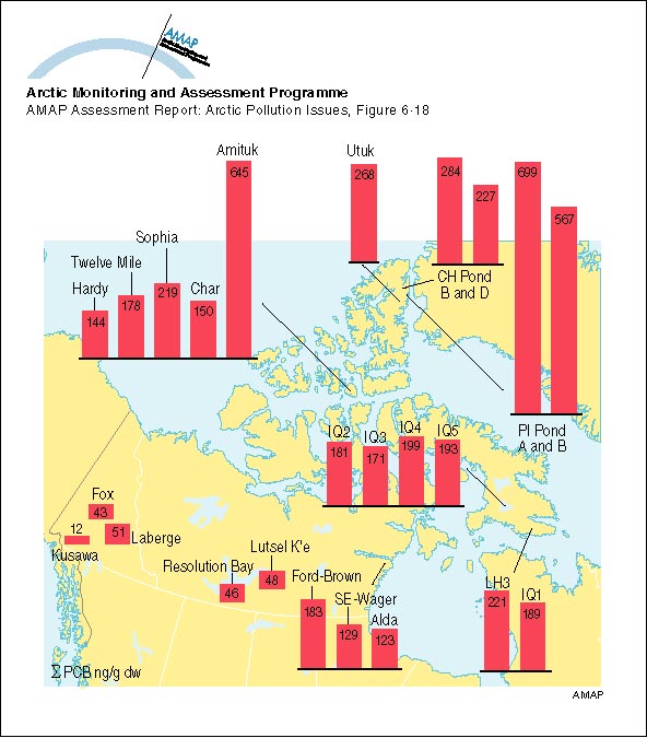 Geographic trends of sum-PCBs in zooplankton (>100 µm) in northern Canadian lakes All concentrations in ng/g dw