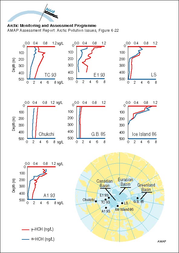 Data taken from: Gaul, H., 1989. Organochlorine compounds in water and sea ice of the European Arctic sea. In: Global significance of the transport and accumulation of polychlorinated hydrocarbons in the Arctic, Oslo, Sept, 1989. Unpublished conference