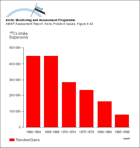 Yearly intake of 137Cs from various dietary components by the ‘selected’ population of Arctic Canada