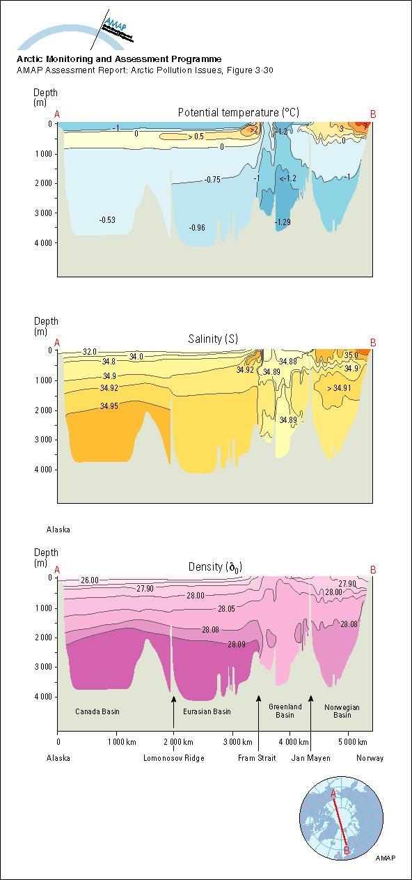Aagaard, K., J.H. Swift and E.C. Carmack, 1985. Thermohaline circulation in the Arctic Mediterranean seas. J. geophys. Res. 90: 4833-4846. (AAR Figure 3.30)