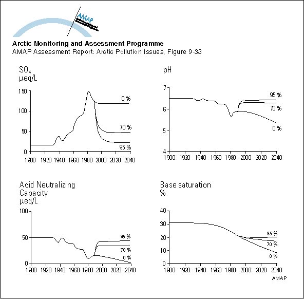 Wright, R.F. and R.F. Traaen, 1992. Dalelva, Finnmark, northernmost Norway: prediction of future acidification using the MAGIC model. Norwegian Institute for Water Research, Oslo, NIVA-rapport 486/92. (AAR Figure 9.33)