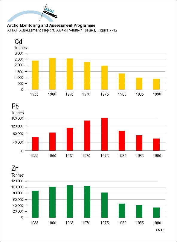 Changes with time in European atmospheric emissions of Cd, Pb and Zn