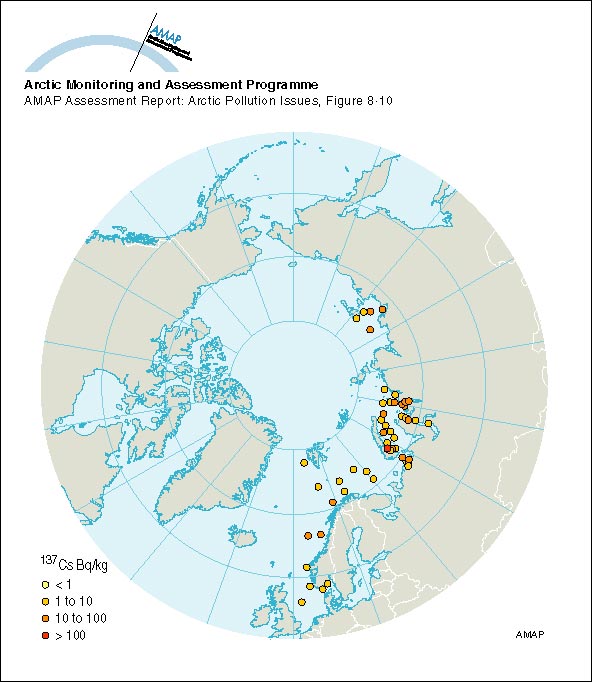 Average 137Cs activity concentrations in surface sediments of some Arctic seas sampled from 1992 to 1995